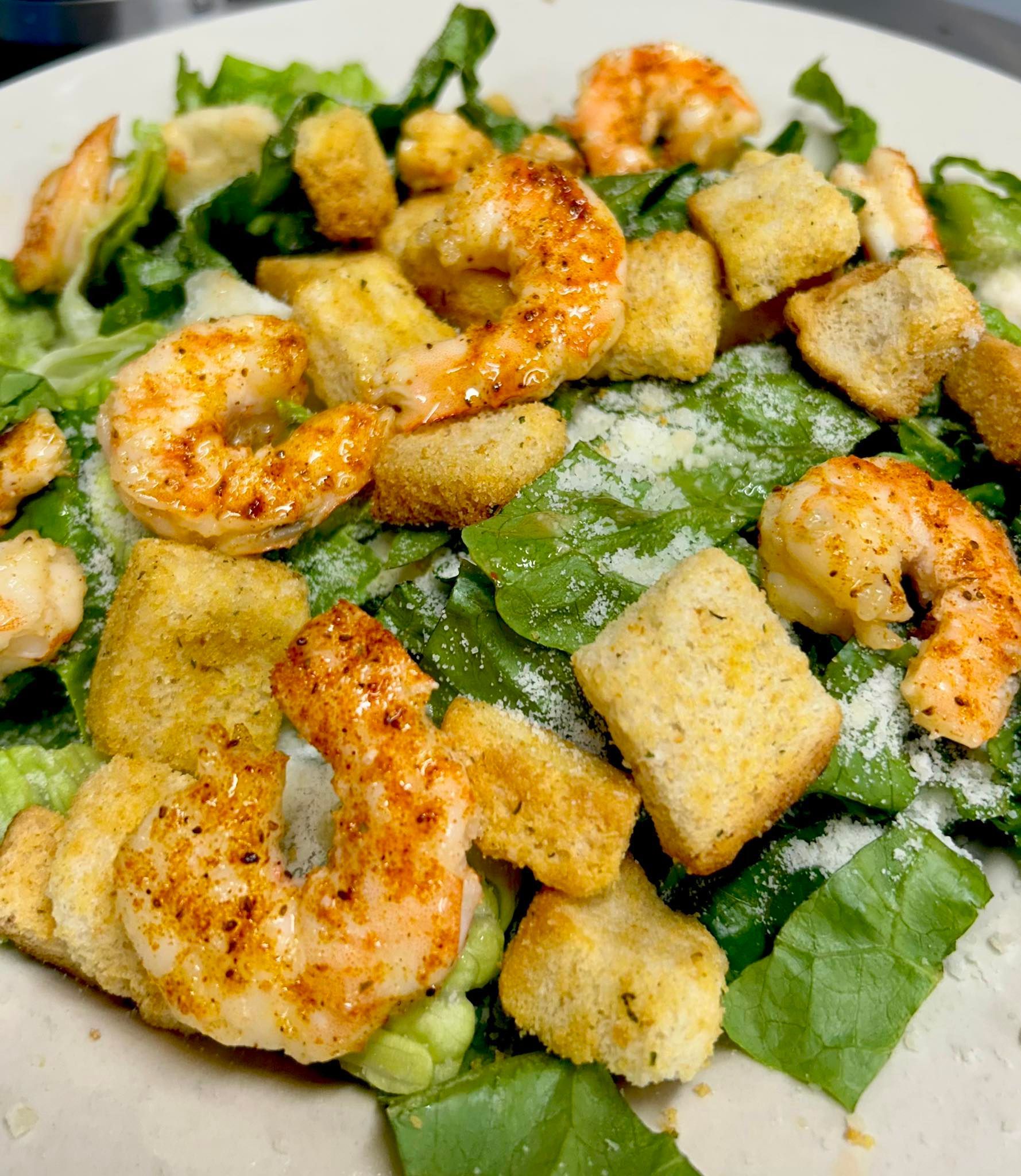 Fresh chopped romaine topped with parmesan cheese, croutons and your choice of protein. Served with Caesar dressing